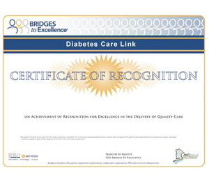 We have achieved The Bridges to Excellence Recognition for the Achievement of Superior Quality Diabetic Care.
